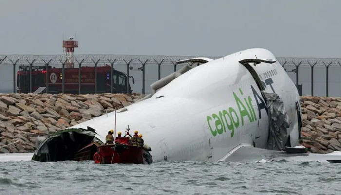 ہانگ کانگ میں کارگو طیارہ لینڈنگ کے دوران رن وے سے پھسل کر سمندر میں جاگرا جس سے طیارے کے عملے کے دو افراد ہلاک ہوگئے۔