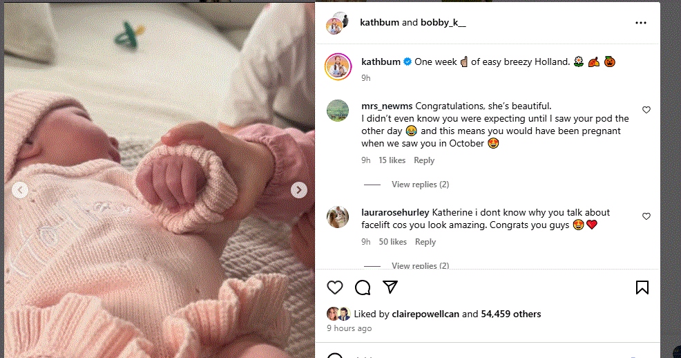 بچے کی آمد کے فورا. بعد ، کیترین کے شوہر بابی کوٹسٹرا نے گذشتہ اتوار کو انسٹاگرام پر ہالینڈ کی پیدائش کا اعلان کیا ، اس کی پیدائش کے فورا بعد لی گئی تصاویر کا اشتراک کیا۔